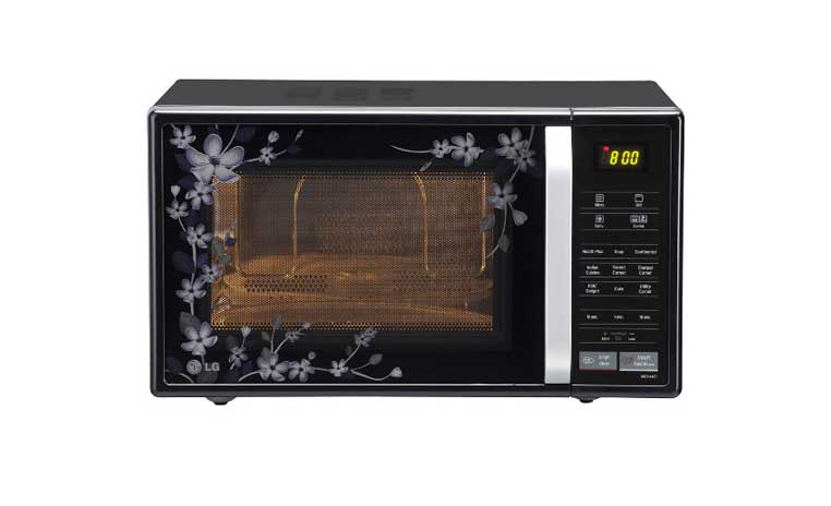 The LG MC2144CP Convection Microwave Oven with the capacity of 21 litres is best for small family and for those who like to cook frequently in an oven. It features 245 mm turntable and comes with an alarm that rings when the cooking cycle is complete. It has four power convection heaters that operates by air convection currents circulating through the body of the oven, and across its heating element. This heats up the air, causing it to increase in volume and so become buoyant and rise. It also helps in wider, fuller, more complete and even cooking as these heaters are evenly placed in the microwave that supplies even heat throughtout the oven. Its 4-in-1 multi-functional cooking includes four modes i.e., Convection, Grill, Solo and Combination mode. The Convection mode enables you to cook food in the same way as in a traditional oven. The Grill mode will allow you to brown and crisp food quickly. The metal tray is placed between a glass tray and a grill rack at the grill mode. The grill rack(high rack) must be used during grill cooking. The Solo mode is suitable for defrosting, reheating and cooking. And the Combination mode allows you to cook food with heater and microwave at the same time or alternately. This mode is very good for baking and browning. The microwave cooks the food, and the grill browns it. It is ideal for browning dishes with topings and it takes less time to cook your food.