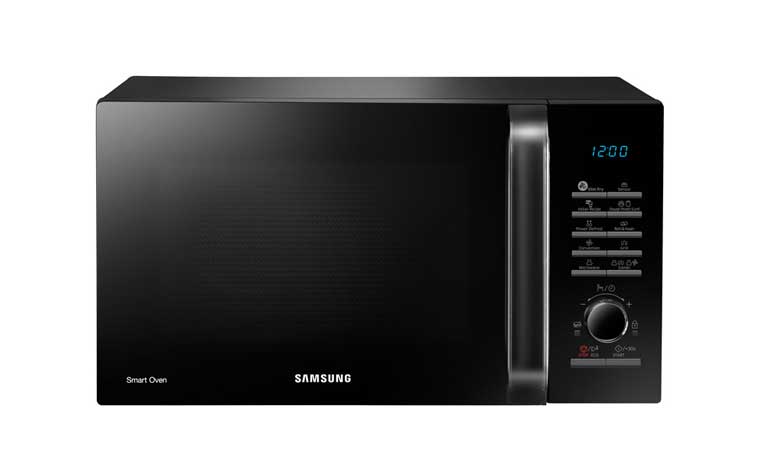 Switch to cooking healthy meals effortlessly with this Samsung convection microwave oven. It comes with many features like slim fry, smart moisture sensor and pre-set recipes, which help you to cook and eat healthy and delicious food. Enjoy fried chicken or french fries by avoiding deep fry or oil spills with this microwave oven. Its Slim Fry technology uses only a touch of oil to give you yummy food, which is crispy on the outside and perfectly cooked from inside. It cooks food using hot air circulation that is generated from the microwave, grill and convection heaters. With Smart Moisture sensor, it can automatically detect and adjusts the humidity in its interior to retain the freshness and original taste of your food. Along with all these healthy features it comes with 15 pre-programmed healthy recipes, which help you cook with convenience. Cook anything from grilled chicken, brown rice, fresh seafood or bake vegetables, which are moist and nutritious with this auto cook menumicrowave.