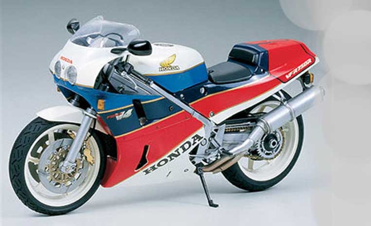 Honda's release of their limited production, road-going, "works racer" VFR750R made headlines in the motorcycle scene in 1987. The VFR750R is a street-legal counterpart of the formidable RVF750 endurance racer which displayed remarkable potential in the world endurance championships. This bike follows the concept seen in the RVF750, including the use of space-age technology and components such as titanium, carbon-fiber, kevlar, and magnesium. It betters the earlier bikes by a wide margin. The VFR750R also uses a twin-spar aluminum box frame, Pro-Arm (rear swing arm), and a center-lock hub rear wheel. These superlative features and the RVF's racing reputation have made it a collector's item even before the first unit was off the production line. The 748cc, liquid cooled, V4 cylinder 16 valve engine has been kept compact to keep the VFR's overall dimensions very close to the current 500cc Grand Prix racers, for a minimum frontal area. Further, this motorcycle departs from the typical Japanese mass-production practice by using a great deal of human labor on each unit, such as the FRP cowling and windscreen being laid up by hand. The Honda VFR750R is one potent package and has been designed to be very competitive on racing tracks in STOCK form, yet remain street legal. It will remain a desirable and elusive high performance bike for years to come.