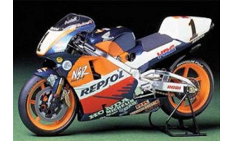 This is a plastic assembly model kit of the Honda NSR500 ridden by legendary Australian rider Michael Doohan during the 1998 WGP season. The 2-stroke 4-cylinder engine which was capable of producing 200hp has its crank case and air box realized as one part to provide the model with a precise finish. Once the motor is completed with the radiator and water pipes, it can be then attached to the frame with small screws. The upper and under cowls have been accurately reproduced including their subtle curves. Cowls including the seat cowl can be removed even after assembly. Markings to depict the NSR500 ridden by Michael Doohan, Alex Criville, and Takayuki Okada included.